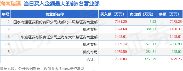 证券之星消息,沪深交易所2025年11月25日公布的交易公开信息显示,海南瑞泽(002596)因日振幅值达到15%的前5只证券登上龙虎榜。此次是近5个交易日内第1次上榜。