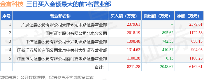 证券之星消息,沪深交易所2025年11月25日公布的交易公开信息显示,金富科技(003018)因连续三个交易日内,涨幅偏离值累计达到20%的证券登上龙虎榜。此次是近5个交易日内第1次上榜。