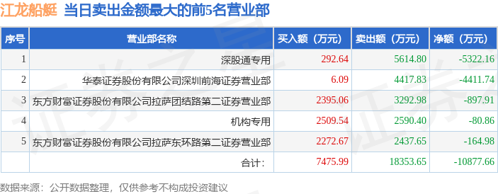 证券之星消息,沪深交易所2025年11月25日公布的交易公开信息显示,江龙船艇(300589)因日换手率达到30%的前5只证券登上龙虎榜。此次是近5个交易日内第5次上榜。