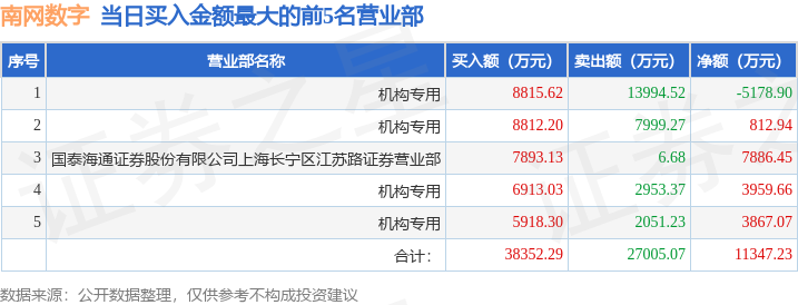 证券小知识:龙虎榜是交易所披露的竞价交易公开信息,现身龙虎榜的个股都是当日最为活跃的个股,是投资者日常重点关注的数据。交易所公布当日买入金额和卖出金额前五名的席位,其中一些席位代表特殊意义,如机构专用席位是指基金专用席位、券商自营专用席位、社保专用席位、券商理财专用席位、保险机构专用席位、保险机构租用席位、QFII专用席位等机构投资者买卖证券的专用通道和席位。深股通专用、沪股通专用为北向资金的交易席位。从龙虎榜数据可以发现和研究机构、游资和散户的资金动向。一些营业部席位经常上榜,市场知名度较高,投资者整理代表散户、游资、量化等不同资金的营业部席位。