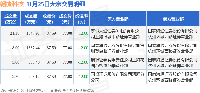 证券之星消息,11月25日翱捷科技发生大宗交易,交易数据如下: