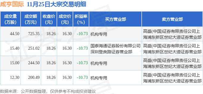 证券之星消息,11月25日咸亨国际发生大宗交易,交易数据如下: