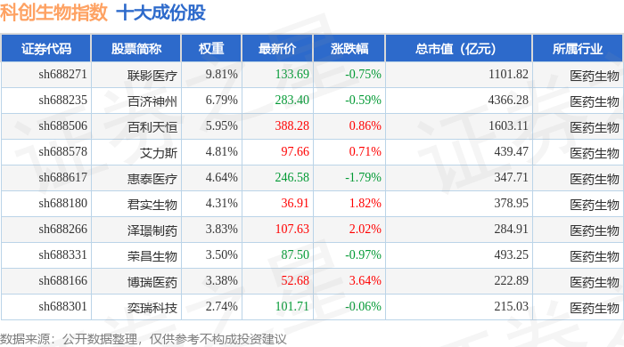 科创生物(000683)指数十大成份股详情如下: