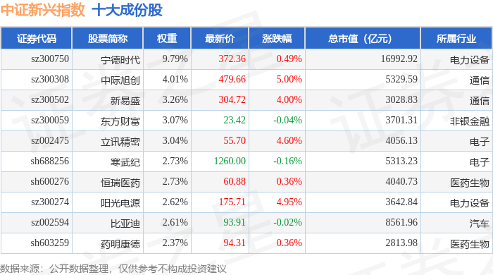 中证新兴(000964)指数十大成份股详情如下: