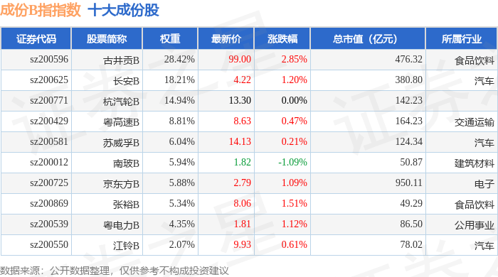 成份B指(399003)指数十大成份股详情如下: