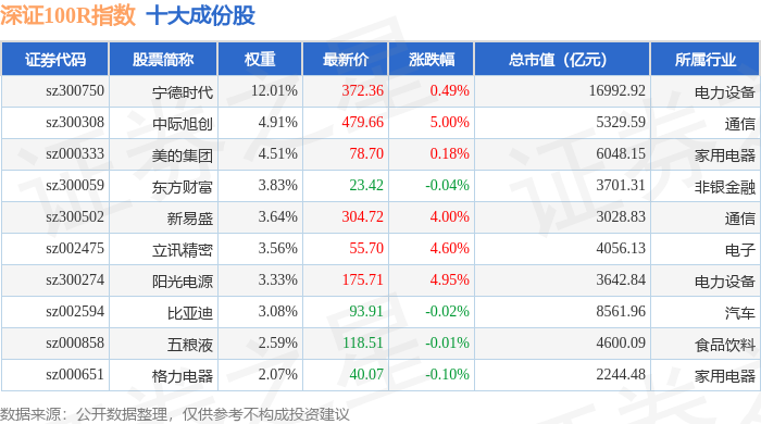 资金流向方面,深证100R(399004)指数成份股当日主力资金净流入合计48.25亿元,游资资金净流出合计21.05亿元,散户资金净流出合计27.2亿元。成份股资金流向详情见下表: