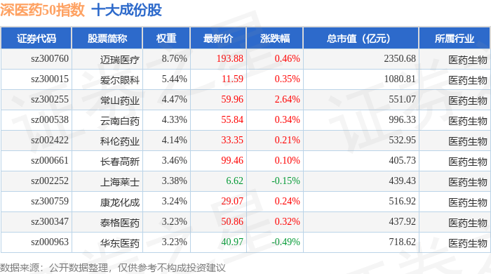 证券之星消息,11月25日,深医药50(399647)指数报收于8088.18点,涨0.47%,成交158.66亿元,换手率1.13%。当日该指数成份股中,上涨的有35家,华兰疫苗以11.25%的涨幅领涨,下跌的有15家,海思科以1.8%的跌幅领跌。
