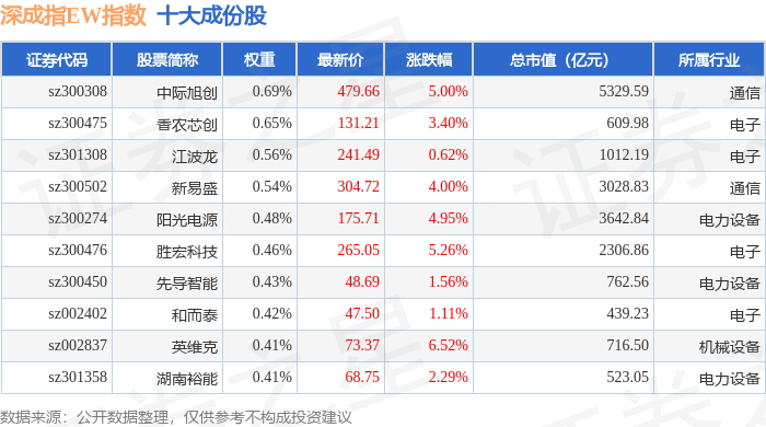证券之星消息,11月25日,深成指EW(399659)指数报收于4466.81点,涨1.44%,成交4843.9亿元,换手率1.74%。当日该指数成份股中,上涨的有353家,华兰疫苗以11.25%的涨幅领涨,下跌的有126家,海大集团以3.41%的跌幅领跌。