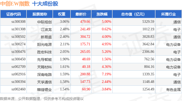证券之星消息,11月25日,中创EW(399660)指数报收于2577.08点,涨1.82%,成交2018.64亿元,换手率1.33%。当日该指数成份股中,上涨的有72家,沪电股份以10.01%的涨幅领涨,下跌的有25家,海大集团以3.41%的跌幅领跌。