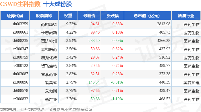资金流向方面,CSWD生科(399993)指数成份股当日主力资金净流入合计1.83亿元,游资资金净流入合计1.68亿元,散户资金净流出合计3.78亿元。成份股资金流向详情见下表: