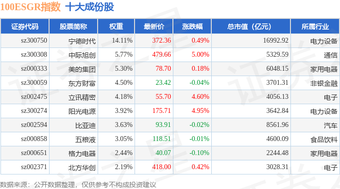 证券之星消息,11月25日,100ESGR(470027)指数报收于7954.18点,涨1.41%,成交1478.61亿元,换手率0.92%。当日该指数成份股中,上涨的有55家,沪电股份以10.01%的涨幅领涨,下跌的有20家,中信特钢以2.97%的跌幅领跌。