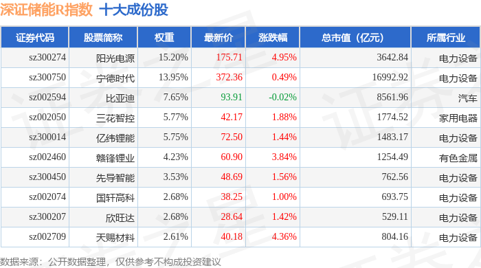 深证储能R(470036)指数十大成份股详情如下: