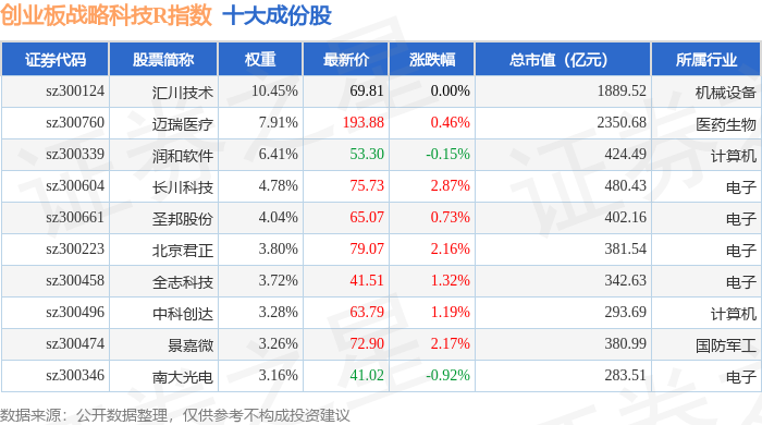 创业板战略科技R(471004)指数十大成份股详情如下: