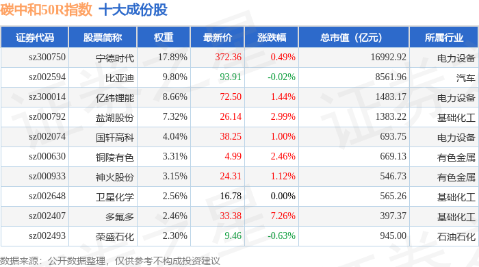碳中和50R(480021)指数十大成份股详情如下: