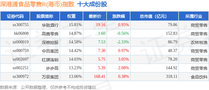 深港通食品零售R(港币)(483038)指数十大成份股详情如下: