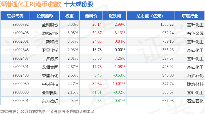 深港通化工R(港币)(483064)指数十大成份股详情如下: