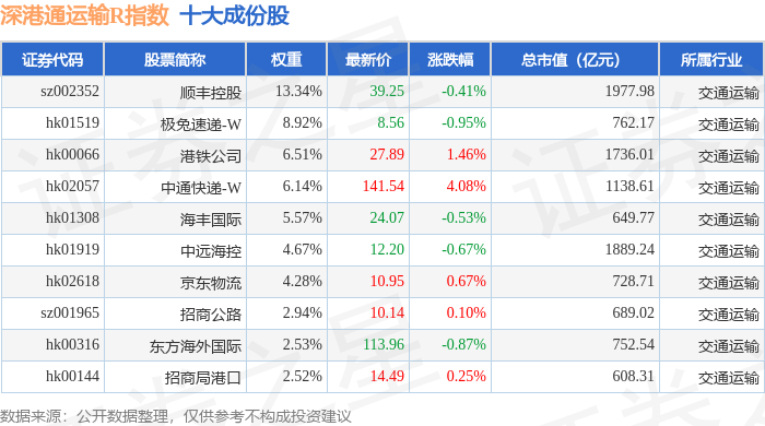 资金流向方面,深港通运输R(483077)指数成份股当日主力资金净流入合计1.43亿元,游资资金净流入合计2348.5万元,散户资金净流出合计1.67亿元。成份股资金流向详情见下表: