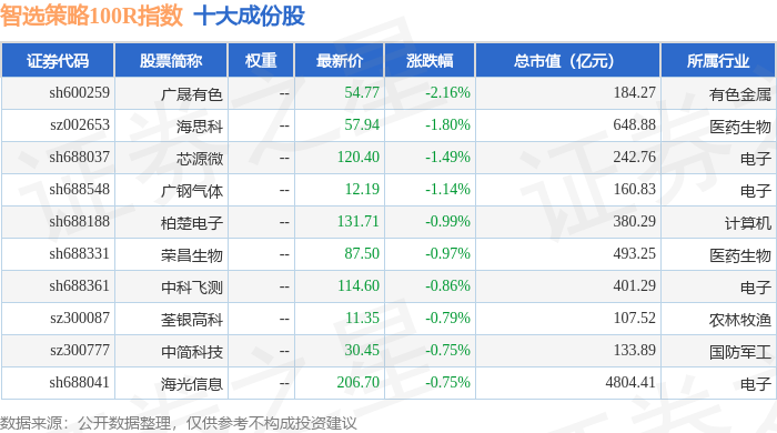证券之星消息,11月25日,智选策略100R(489015)指数报收于4635.67点,涨3.18%,成交1779.02亿元,换手率2.6%。当日该指数成份股中,上涨的有77家,铂科新材以10.61%的涨幅领涨,下跌的有22家,广晟有色以2.16%的跌幅领跌。