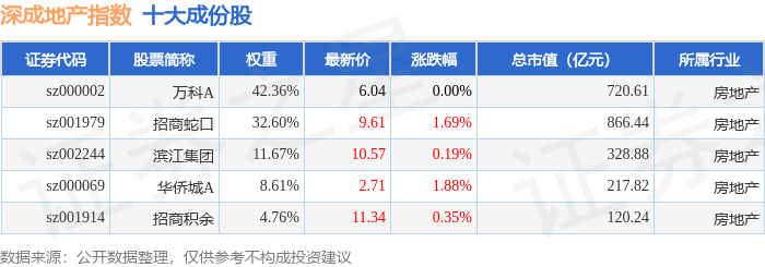 证券之星消息,11月25日,深成地产(971001)指数报收于481.7点,涨0.77%,成交17.48亿元,换手率1.08%。当日该指数成份股中,上涨的有4家,华侨城A以1.88%的涨幅领涨。