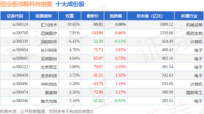 创业板战略科技(971004)指数十大成份股详情如下: