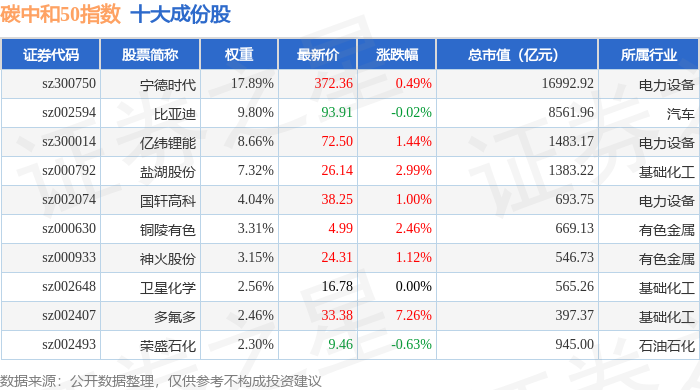 碳中和50(980021)指数十大成份股详情如下: