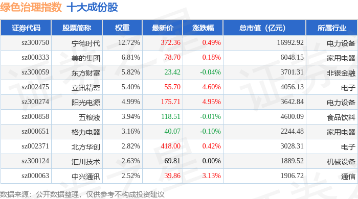 资金流向方面,绿色治理(980058)指数成份股当日主力资金净流入合计33.39亿元,游资资金净流出合计9.17亿元,散户资金净流出合计24.21亿元。成份股资金流向详情见下表: