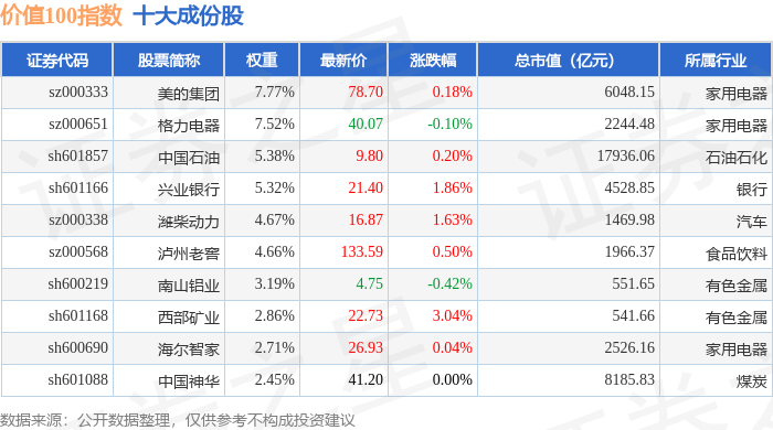 价值100(980081)指数十大成份股详情如下: