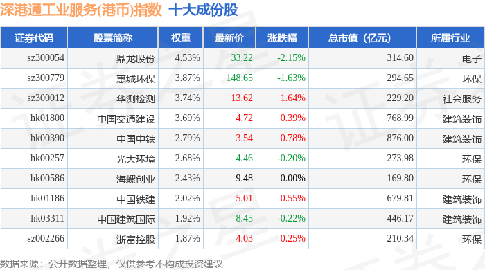 深港通工业服务(港币)(983056)指数十大成份股详情如下: