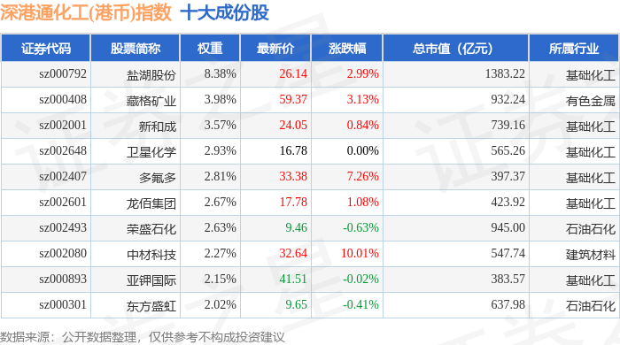 深港通化工(港币)(983064)指数十大成份股详情如下: