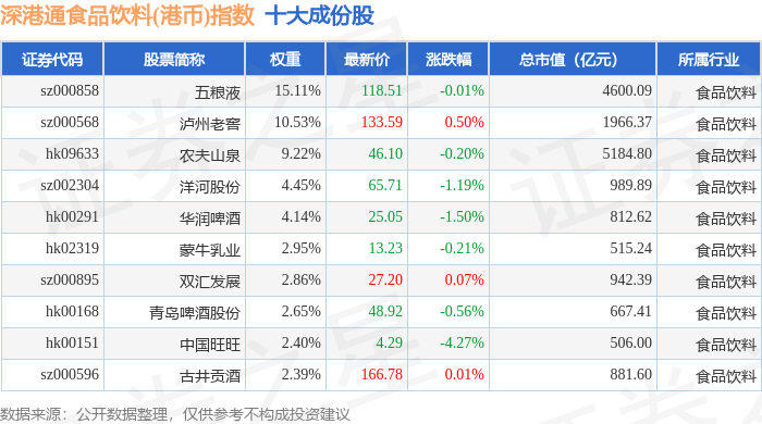 深港通食品饮料(港币)(983066)指数十大成份股详情如下: