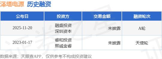 证券之星消息,根据天眼查APP于11月20日公布的信息整理,深圳市泽塔电源系统有限公司A轮融资,融资额未披露,参与投资的机构包括融盛投资,深圳资本。