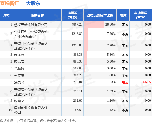 根据喜悦智行2025年三季报公布的十大股东详情如下: