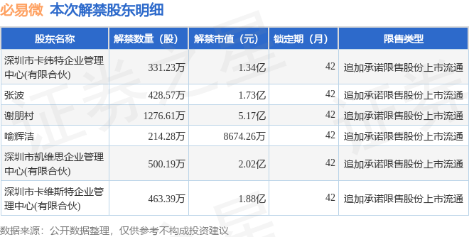 证券之星消息,根据市场公开信息整理,必易微(688045)于11月26日将有3214.28万股限售股份解禁,为公司追加承诺限售股份上市流通,占公司总股本46.02%。(本次数据根据历史公告整理得出,实际情况以上市公司最新公告为准)本次解禁后,公司已无限售股份。具体如下图所示:
