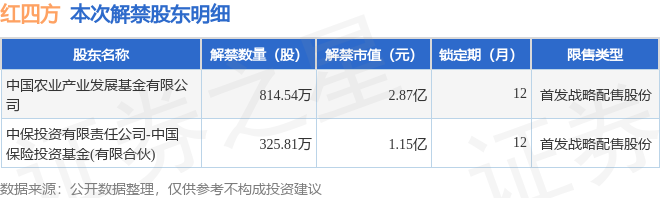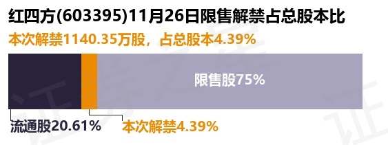 证券之星消息,根据市场公开信息整理,红四方(603395)于11月26日将有1140.35万股限售股份解禁,为公司首发战略配售股份,占公司总股本4.39%。(本次数据根据历史公告整理得出,实际情况以上市公司最新公告为准)最近一年内,该股累计解禁87.85万股,占总股本的0.34%。本次解禁后,公司还有1.95亿股限售股份,占总股本75.0%。具体如下图所示: