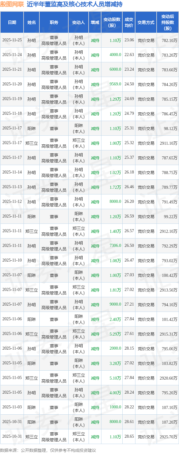 殷图网联近半年内的董监高及核心技术人员增减持详情如下: