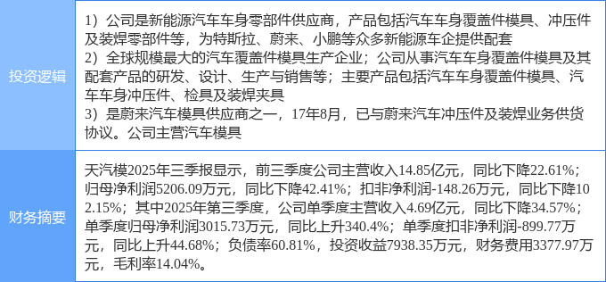 该股为蔚来汽车概念股,汽车零部件,新能源车零部件概念热股,当日蔚来汽车概念股概念上涨0.4%,汽车零部件概念上涨0.07%,新能源车零部件概念上涨0.07%。