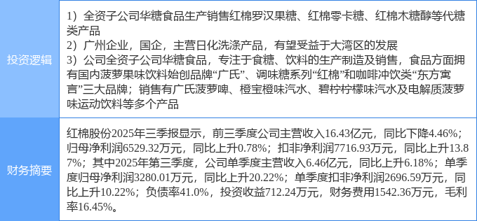 该股为甜味剂/代糖,粤港澳大湾区,饮料概念热股,当日甜味剂/代糖概念上涨1.04%,粤港澳大湾区概念上涨0.85%,饮料概念上涨0.84%。