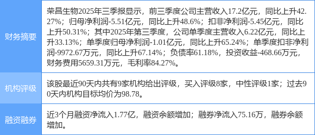 今日荣昌生物(688331)涨5.43%,收盘报92.25元。