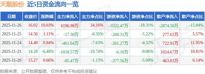 11月26日的资金流向数据方面,主力资金净流入6196.98万元,占总成交额34.16%,游资资金净流出3322.47万元,占总成交额18.31%,散户资金净流出2874.5万元,占总成交额15.84%。