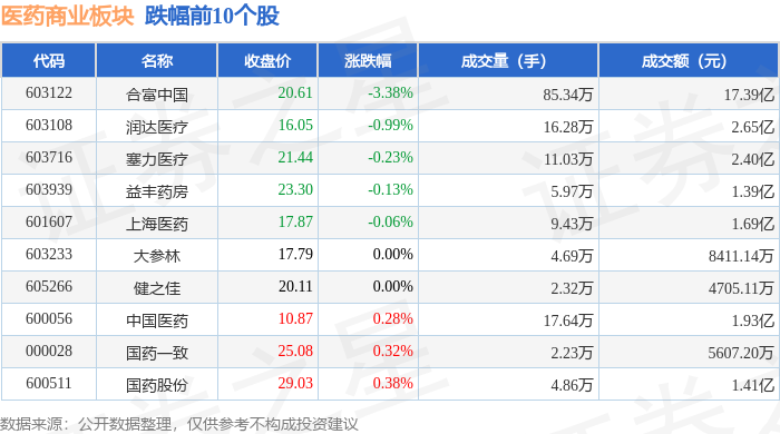 证券之星消息,11月26日医药商业板块较上一交易日上涨1.34%,华人健康领涨。当日上证指数报收于3864.18,下跌0.15%。深证成指报收于12907.83,上涨1.02%。医药商业板块个股涨跌见下表: