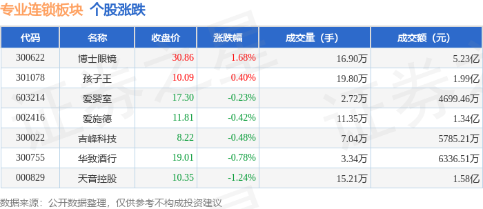 从资金流向上来看,当日专业连锁板块主力资金净流出4073.71万元,游资资金净流出1387.15万元,散户资金净流入5460.86万元。专业连锁板块个股资金流向见下表: