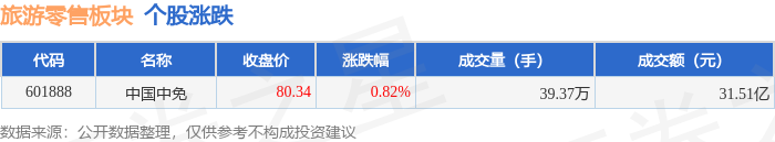 证券之星消息,11月26日旅游零售板块较上一交易日上涨0.82%,中国中免领涨。当日上证指数报收于3864.18,下跌0.15%。深证成指报收于12907.83,上涨1.02%。旅游零售板块个股涨跌见下表: