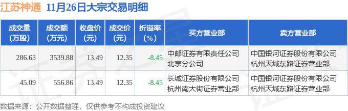 证券之星消息,11月26日江苏神通发生大宗交易,交易数据如下:
