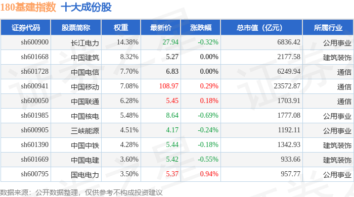 资金流向方面,180基建(000025)指数成份股当日主力资金净流出合计3.43亿元,游资资金净流入合计2.1亿元,散户资金净流入合计1.33亿元。成份股资金流向详情见下表: