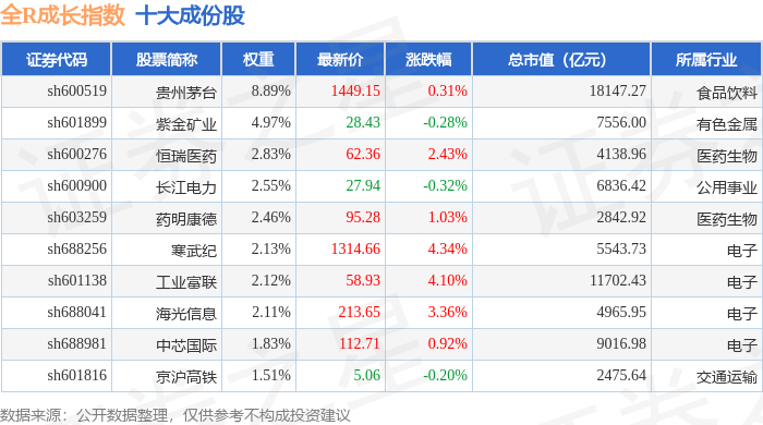 全R成长(000059)指数十大成份股详情如下: