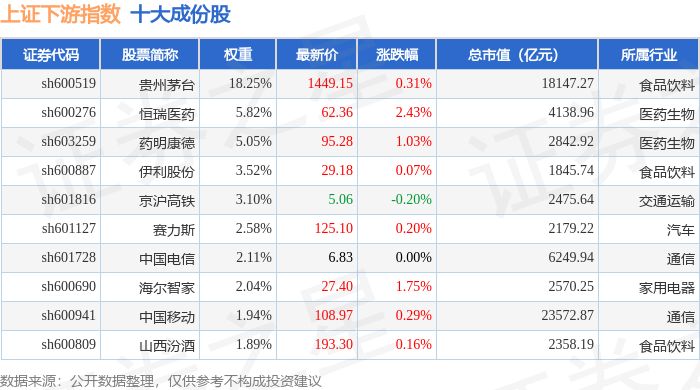 上证下游(000096)指数十大成份股详情如下: