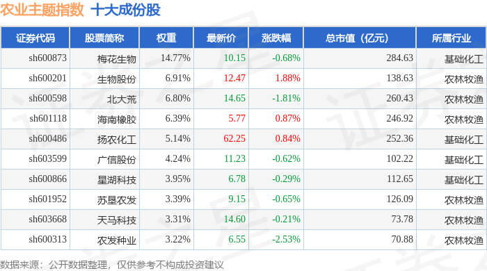 农业主题(000122)指数十大成份股详情如下:
