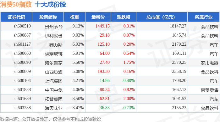 资金流向方面,消费50(000126)指数成份股当日主力资金净流入合计2.33亿元,游资资金净流入合计2.4亿元,散户资金净流出合计4.73亿元。成份股资金流向详情见下表: