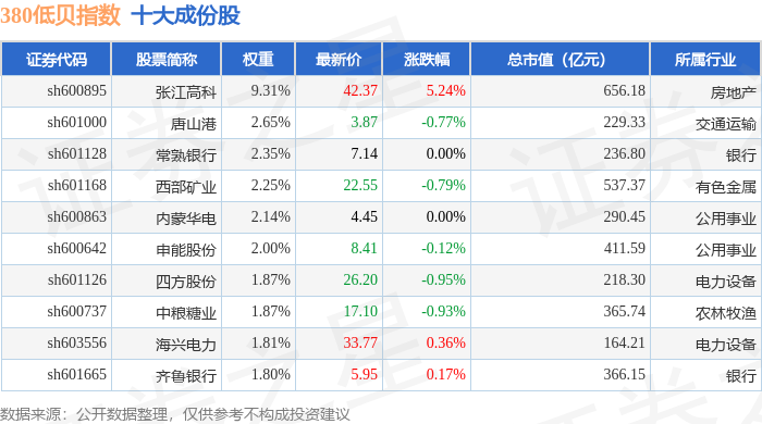 证券之星消息,11月26日,380低贝(000138)指数报收于8098.29点,涨0.15%,成交233.27亿元,换手率0.79%。当日该指数成份股中,上涨的有28家,张江高科以5.24%的涨幅领涨,下跌的有68家,豪悦护理以2.49%的跌幅领跌。