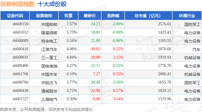 优势制造(000146)指数十大成份股详情如下: